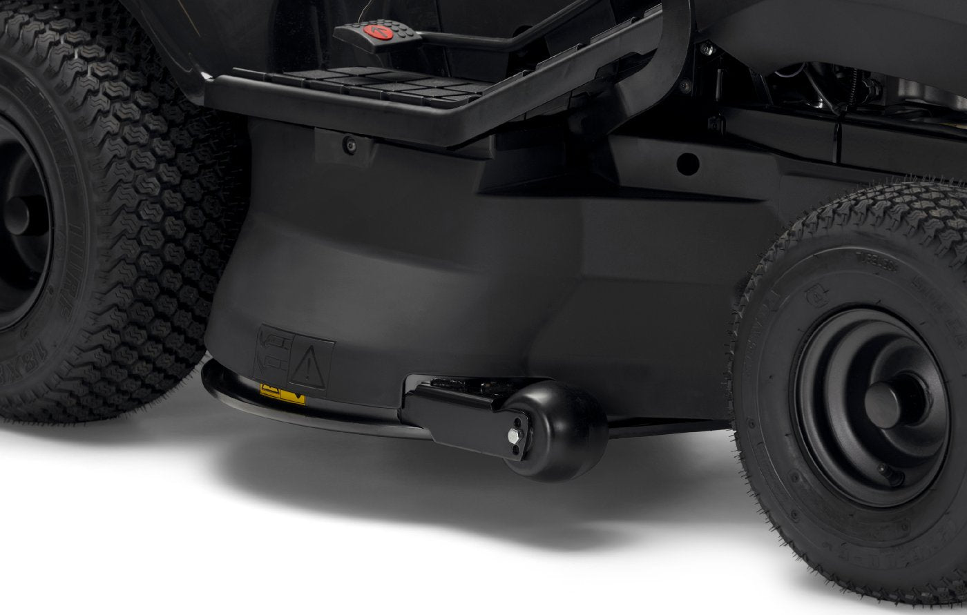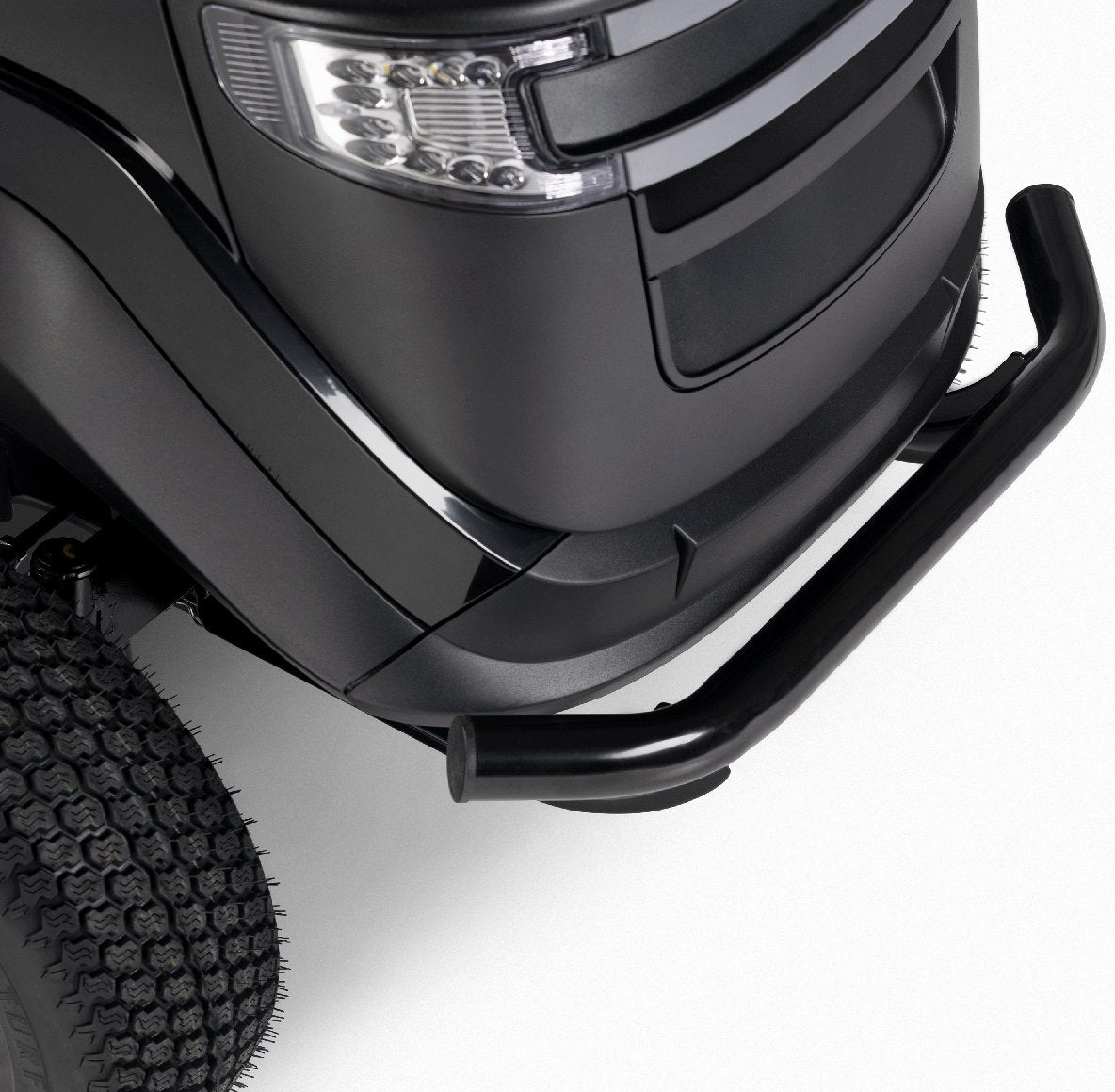 Die serienmäßig im Lieferumfang enthaltene robuste Stoßstange schützt verlässlich die Motorhaube des Rasentraktors | |