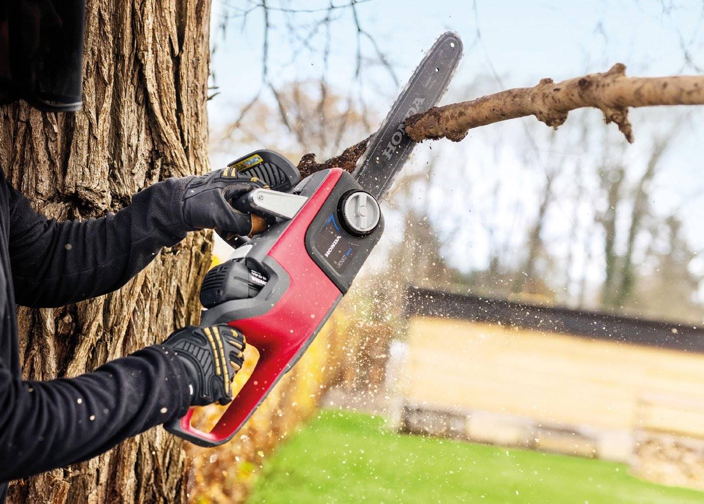 - Die Kettenbremse bringt die Kette zum Stillstand, sobald ein ausreichend starker Rückschlag die Kettenbremse zum Auslösen bringt. Der Anwender wird so vor Unfällen durch den sogenannten Rückschlag geschützt.