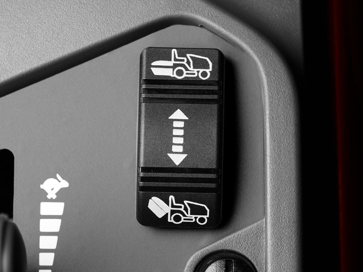 Das Mähdeck lässt sich ganz einfach in die Serviceposition neigen, wodurch die Reinigung und Wartung vereinfacht wird. | |
