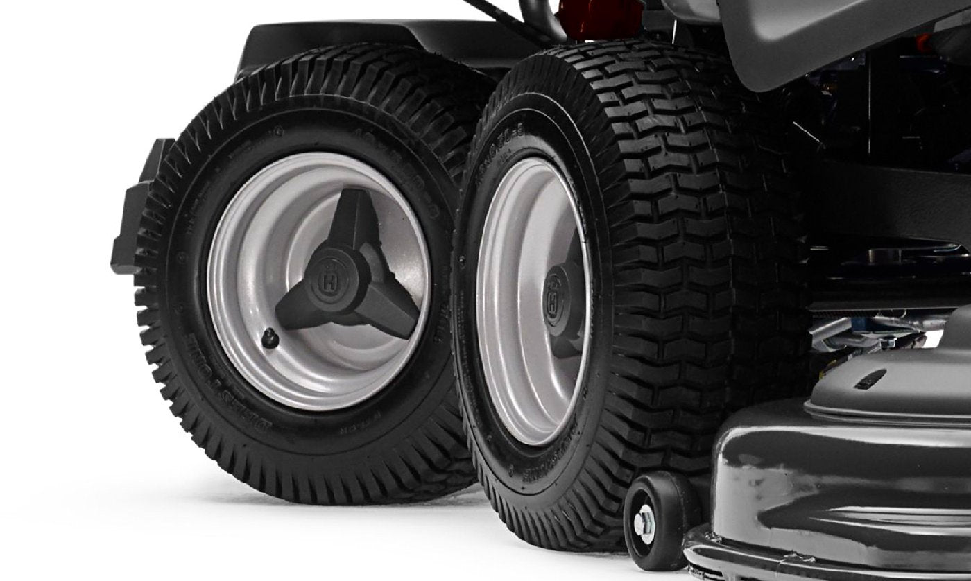 Reifen mit Rasenprofil schonen den Rasen bei gleichzeitig guter Traktion |