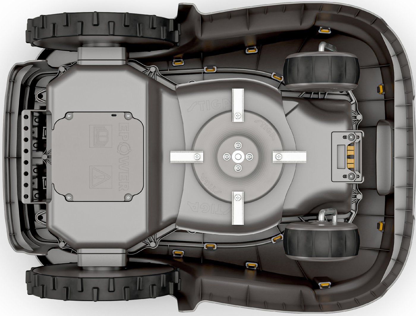 hohe Sicherheit, da durch einen Hebesensor das Mähmesser gestoppt wird, sobald der Mähroboter angehoben wird. | |