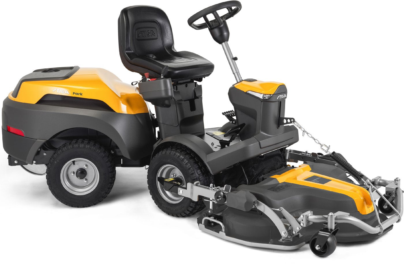 Der Frontmäher Park 500 WX kann mühelos für alle Mäharbeiten und Geländeneigungen eingesetzt werden dank des leistungsstarken 586-cm³-Zweizylindermotors ST 550 von STIGA und des Tuff Torq-Transaxle-Allradgetriebes. Die Maschine erleichtert dank der 50:50-Knickservolenkung und der innovativen Chassis-Bauweise das Lenken und Umfahren um Bäume und Beete. Und dank der großzügigen Schnittbreite von 95 cm bis 125 cm kann der Park 340 schnell große Rasenflächen bearbeiten. Das frontmontierte Mähwerk des Park 500 WX gibt dir freie Sicht nach vorn, müheloses Erreichen von Ecken und Winkeln und wunderbare Ergebnisse an den Rasenkanten. Und da es sich um ein Schwebemähwerk handelt, kann die Maschine problemlos auch gut auf unebenen Untergründen eingesetzt werden. Um das Mähwerk innerhalb von Sekunden zu reinigen, aktiviere einfach den QuickFlip-Mechanismus. Das kompakte Armaturenbrett bietet dir praktische Steuerungen, beispielsweise eine elektronische Schnitthöheneinstellung. Damit außerdem auch bei schlechten Lichtverhältnissen sicher gearbeitet werden kann, ist der Park Frontmäher mit hellen LED-Scheinwerfern mit Normal- und Fernlicht ausgestattet. Das ist z.B. im Winter hilfreich, wenn du deinen Frontmäher in Verbindung mit einem Schneeräumschild, einer Kehrmaschine oder einer Schneefräse in ein Ganzjahresgerät verwandelst. Damit du immer eine bequemen Haltung hast, ist der Sitz des Frontmähers mit einer komfortablen Rückenlehne ausgestattet und es gibt jede Menge Beinfreiheit. Ganz gleich, wie hoch das Gras oder wie uneben der Boden ist - nimm Platz, entspann dich und lass den Park 500 WX den Rest erledigen. Anhängerkupplung inklusive.