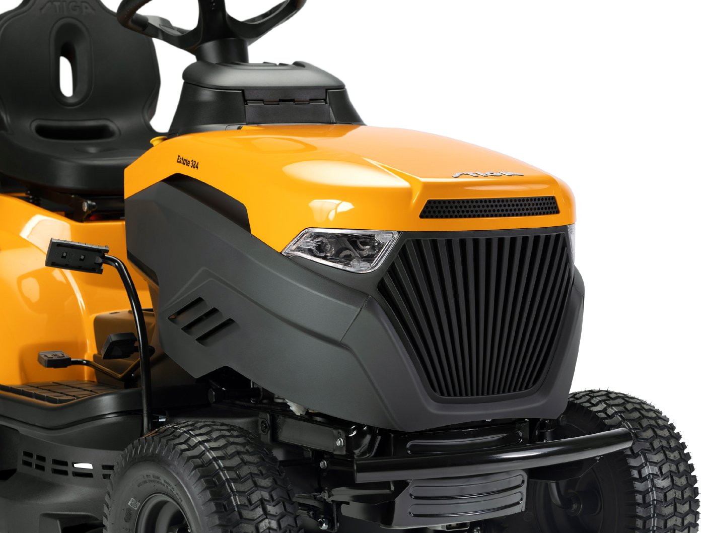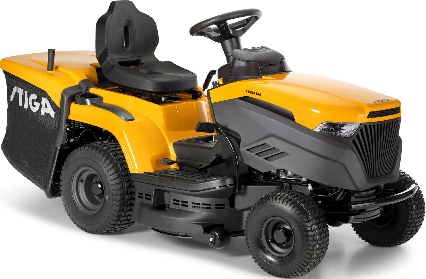 Der Rasentraktor STIGA Estate 384 hat eine Nennleistung von 6,8 kW bei 2400 U/min. Der Mäher ist mit einem pedalgesteuerten stufenlosem Hydrostatantrieb ausgestattet, der eine gleichmäßige Regelung der Fahrgeschwindigkeit ermöglicht, ohne dass der Gang gewechselt werden muss. Bei dem 84 cm breiten Mähdeck mit zwei Messern lassen sich 7 verschiedene Schnitthöhen zwischen 25 und 80 mm auswählen. Die praktische elektromagnetische Messerkupplung wird per Tastendruck gesteuert. Der Estate 384 hat einen 240 Liter Fangkorb und kann auch mit dem STIGA Multiclip-Mulchkit zum Mulchen verwendet werden. Das erhöhte Lenkrad sorgen für ergonomisches, komfortables Fahren. Batterieladegerät und Mulchstecker sind separat erhältlich.